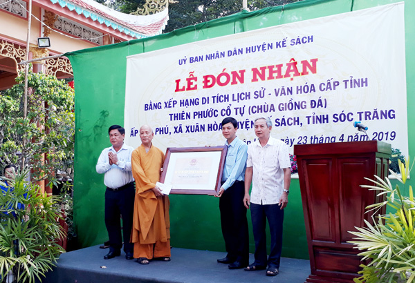 Ngày 23/4, UBND huyện Kế Sách tổ chức lễ đón nhận Bằng xếp hạng di tích lịch sử văn hóa cấp tỉnh chùa Thiên Phước cổ tự (chùa Giồng Đá), xã Xuân Hòa (Kế Sách). Đây là bằng xếp hạng di tích và danh thắng thứ 5 được tỉnh công nhận. Đến dự lễ có các đồng chí: Sơn Thanh Liêm - Phó Giám đốc Sở Văn hóa, Thể thao và Du lịch; Võ Tấn Đức - Phó trưởng Ban Tôn giáo (Sở Nội vụ) cùng đại diện Ban trị sự Giáo hội Phật giáo tỉnh và lãnh đạo UBND huyện Kế Sách, các ban ngành huyện, xã Xuân Hòa và đông đảo chư tăng, ni, nhân dân trên địa bàn huyện.