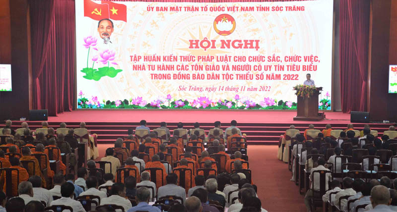 Sáng ngày 14/11, Ủy ban MTTQ Việt Nam tỉnh Sóc Trăng tổ chức Hội nghị tập huấn kiến thức pháp luật cho 350 vị chức sắc, chức việc, nhà tu hành các tôn giáo và người có uy tín tiêu biểu trong đồng bào dân tộc thiểu số trên địa bàn tỉnh.