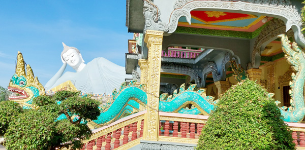 Đến thành phố Sóc Trăng để hòa cùng văn hóa Khmer với điểm dừng chân tại chùa Som Rong, nổi tiếng với công trình xây dựng tượng Phật Thích Ca nhập niết bàn với kích thước dài 72m, cao 22,5m, đặt trên cao khoảng 28m so với mặt đất. Công trình này góp phần tạo điểm nhấn cho du lịch tâm linh thành phố thu hút du khách gần xa.