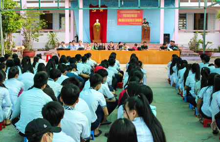 Sáng ngày 29/3, Phòng Phòng, chống ma túy và tội phạm BĐBP Sóc Trăng phối hợp với Đồn Biên phòng An Thạnh Ba và Trường THPT An Thạnh Ba tổ chức tuyên truyền phòng, chống tội phạm ma túy trong học đường và tệ nạn mại dâm cho cán bộ, giáo viên và học sinh.