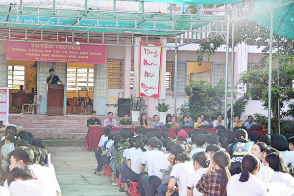 Sáng ngày 22/6, phòng Phòng chống ma túy và tội phạm BĐBP Sóc Trăng phối hợp với Đồn Biên phòng An Thạnh Ba, Trường THPT An Thạnh 3 tổ chức tuyên truyền phòng chống tội phạm ma túy, mua bán người trong học đường cho cán bộ, giáo viên và học sinh.